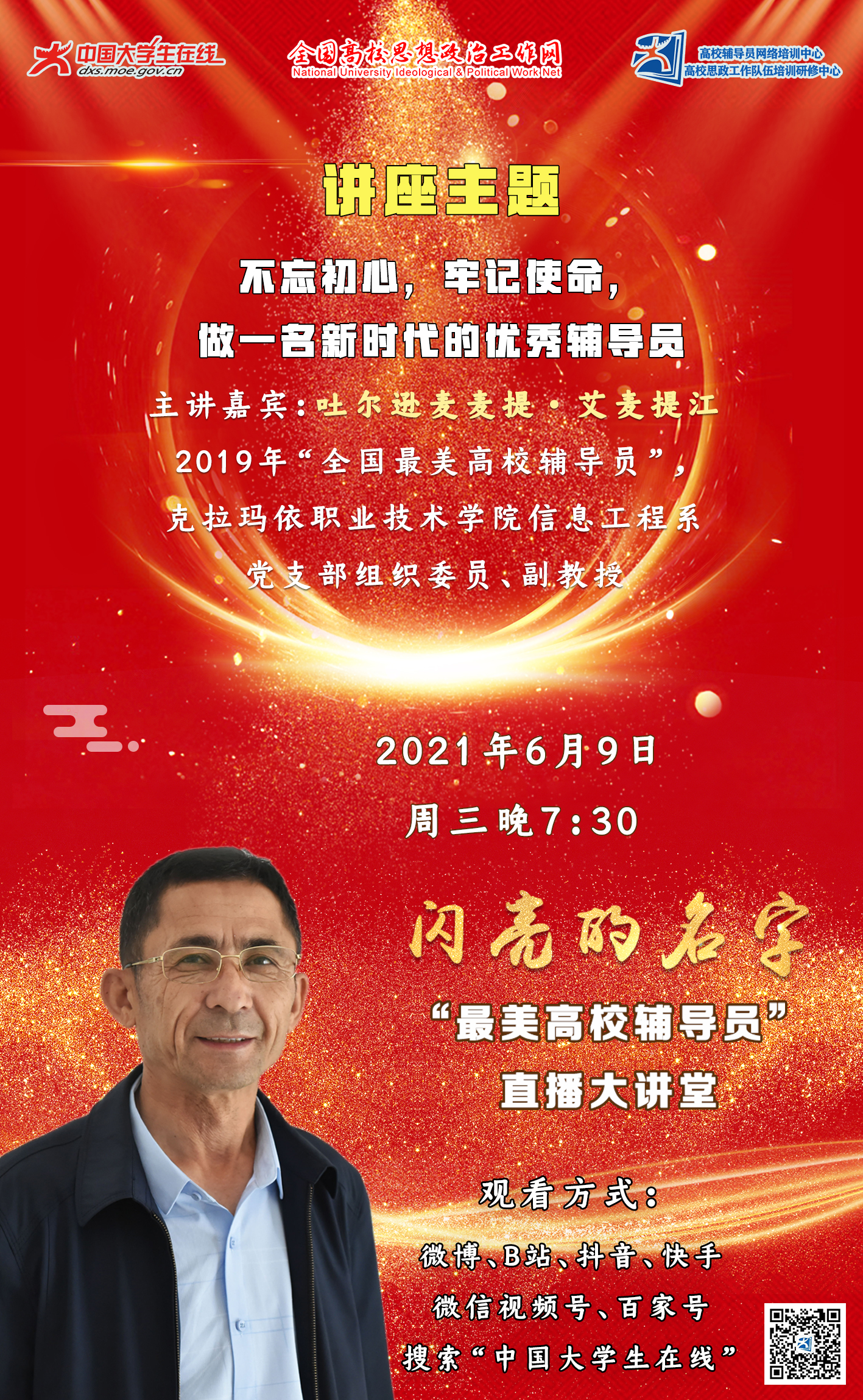 【直播大講堂】吐?tīng)栠d麥麥提?艾麥提江:不忘初心,牢記使命,做一名新時(shí)代的優(yōu)秀輔導(dǎo)員 | 今晚7:30,不見(jiàn)不散