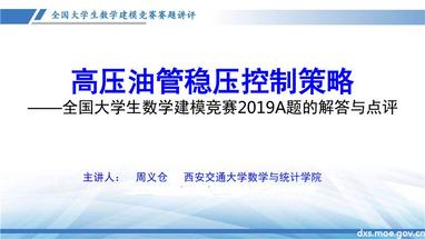 未經作者書面許可,謝絕轉載,請勿下載。2019全國大學生數學建模競賽講評:高壓油管穩壓控制策略。作者:西安交通大學數學與統計學院 周義倉。