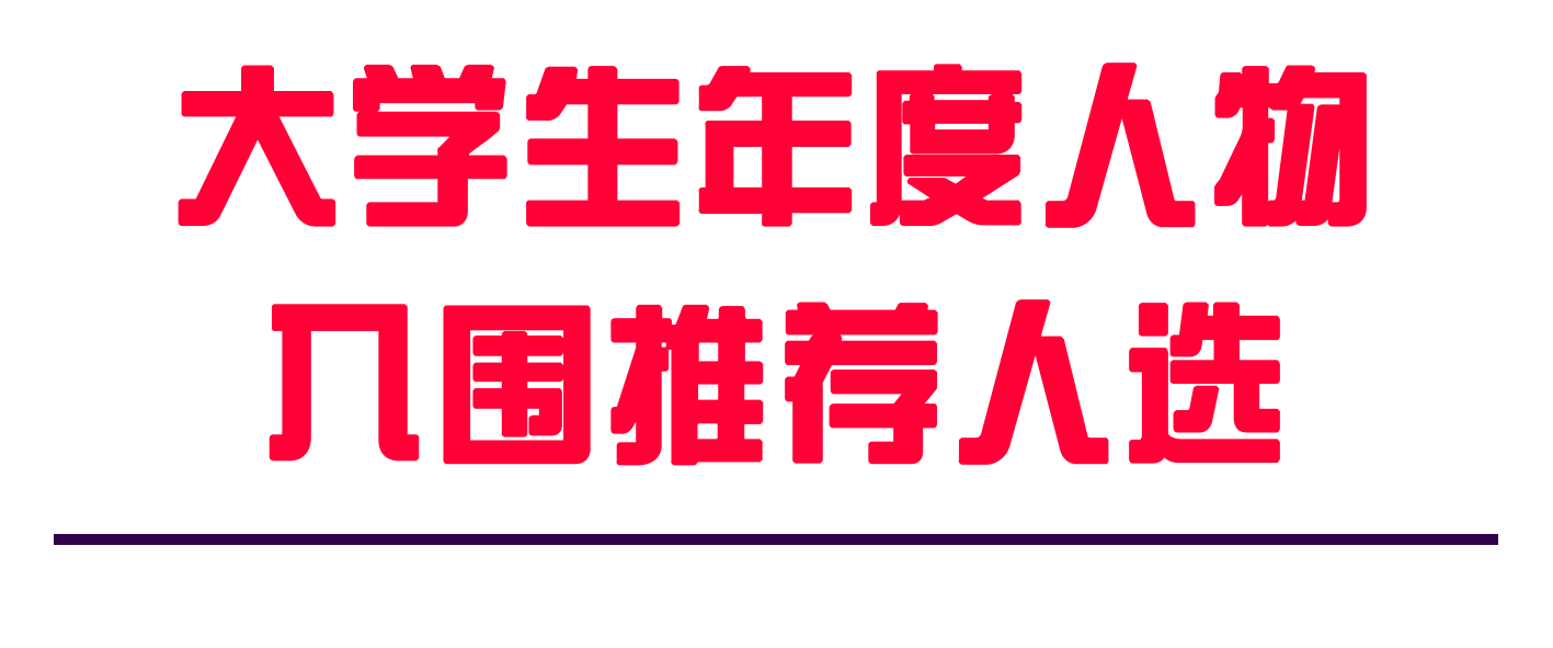 由教育部、人民日報社共同指導,中國大學生在線、人民網、光明日報教育部、 《大學生》雜志聯合主辦的第十七屆“大學生年度人物”推選展示活動,經組織推薦、通訊推選、會議推選等環節, 共遴選出第十七屆“大學生年度人物”20名,第十七屆“大學生年度人物”提名獎30名,第十七屆“大學生年度人物”入圍獎109名。